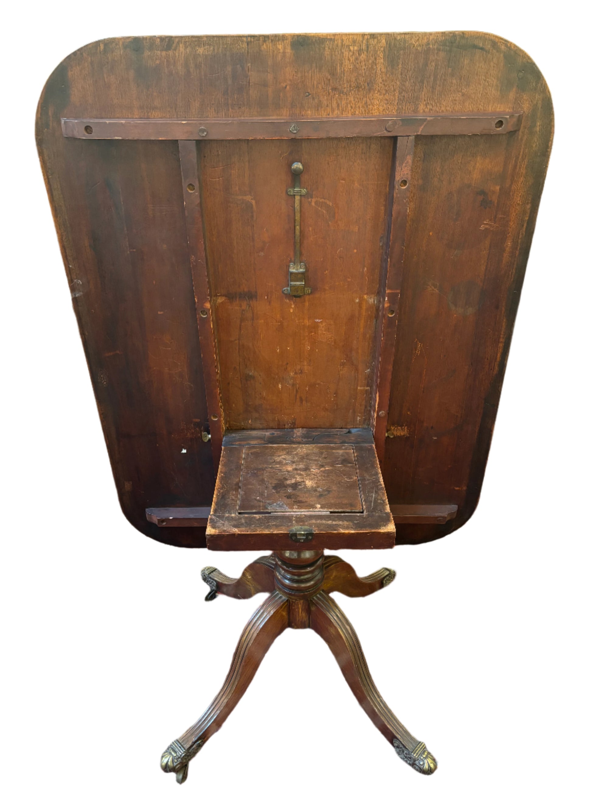 Antique mahogany and burl wood breakfast tilt table.