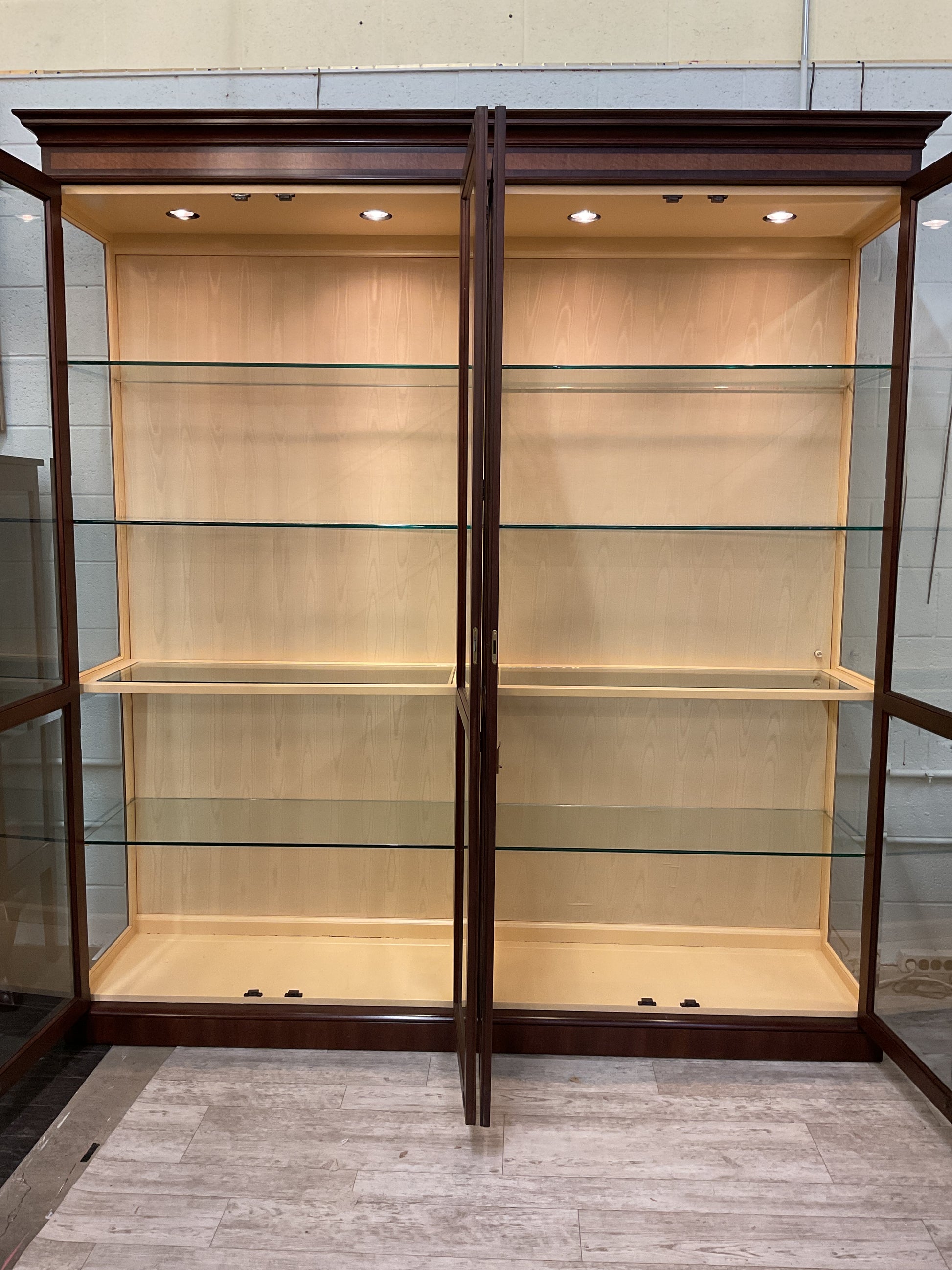 Four door mahogany with burl wood inlay display cabinet / breakfront by EJ-Victor Furniture