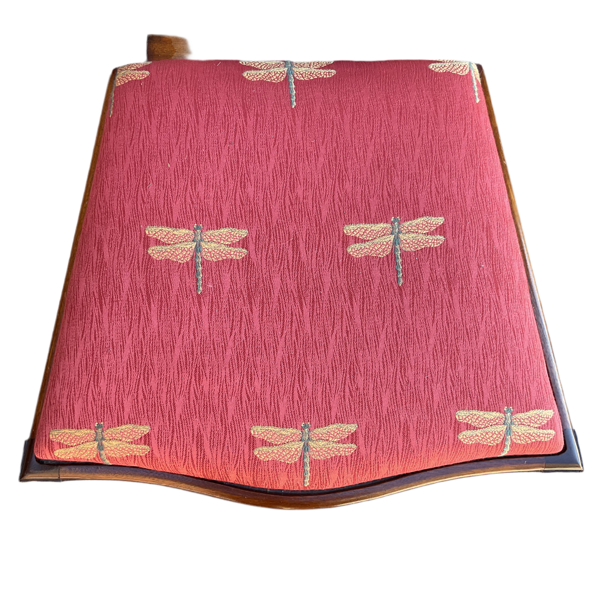Set of 8 (2 arms & 6 Sides) vintage dining chairs with dragonfly upholstery.