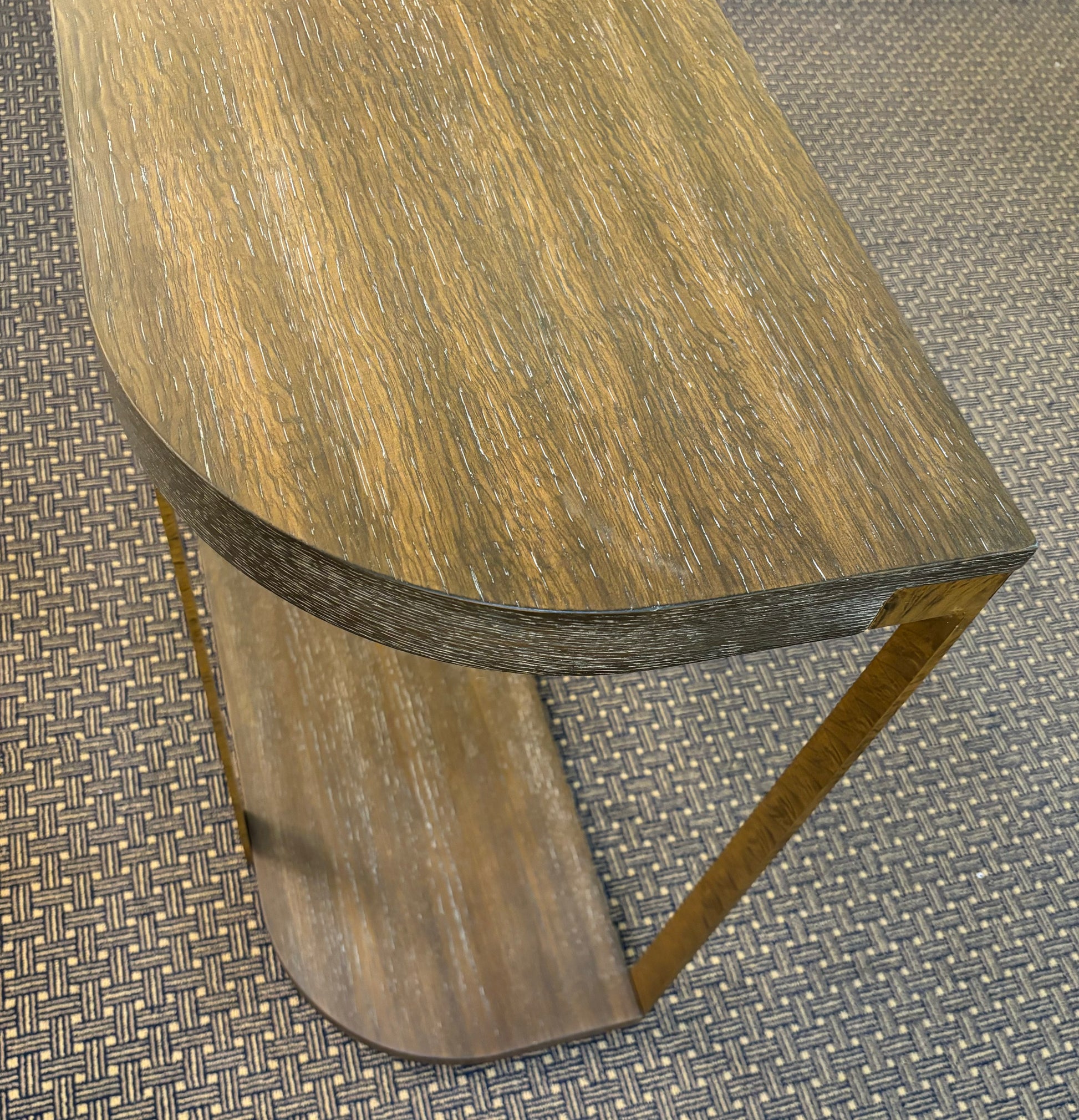 Oak and Gold Metal Console Table