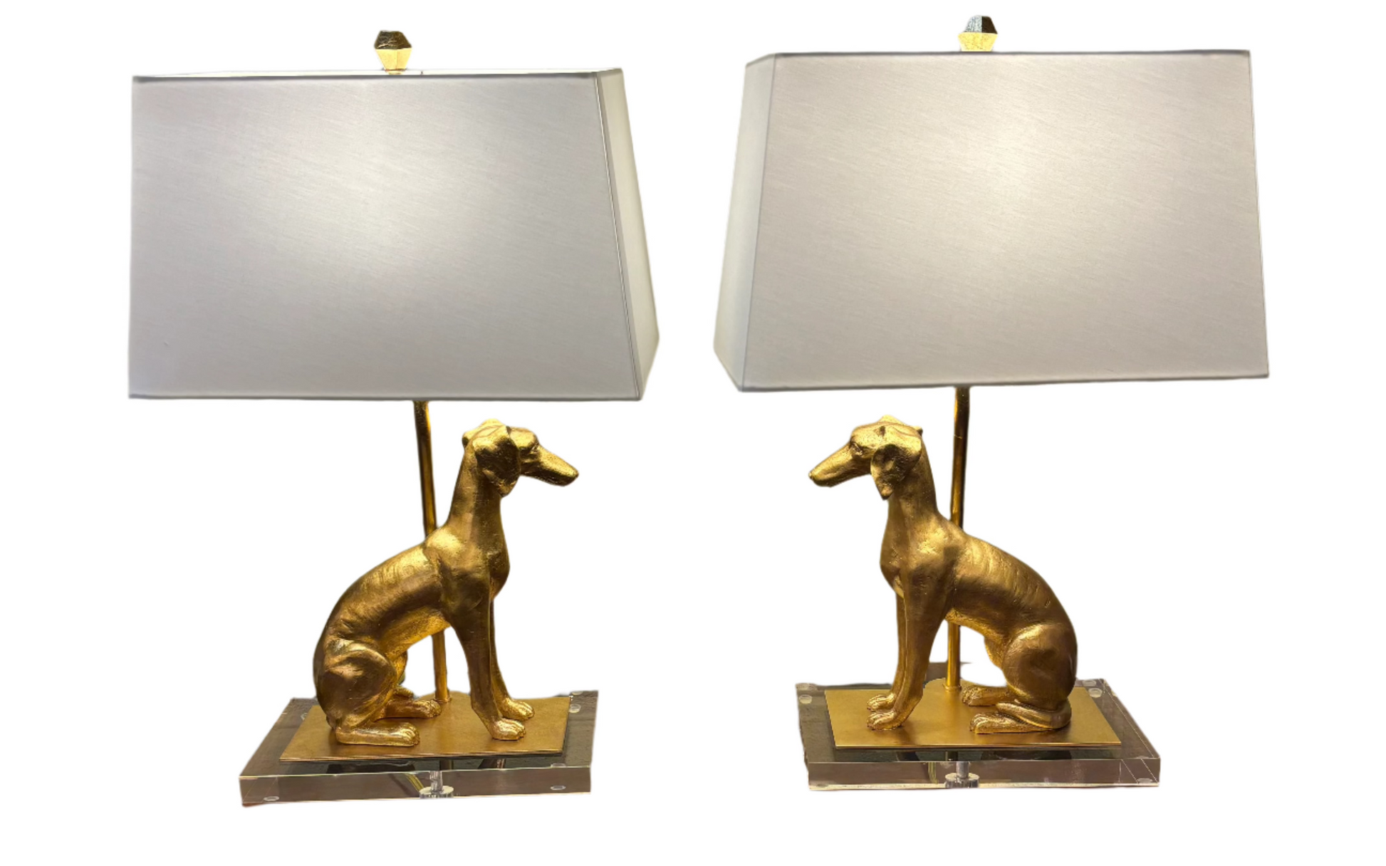 Pair gold dogs lamps. 23.5”H 15”W 9”D