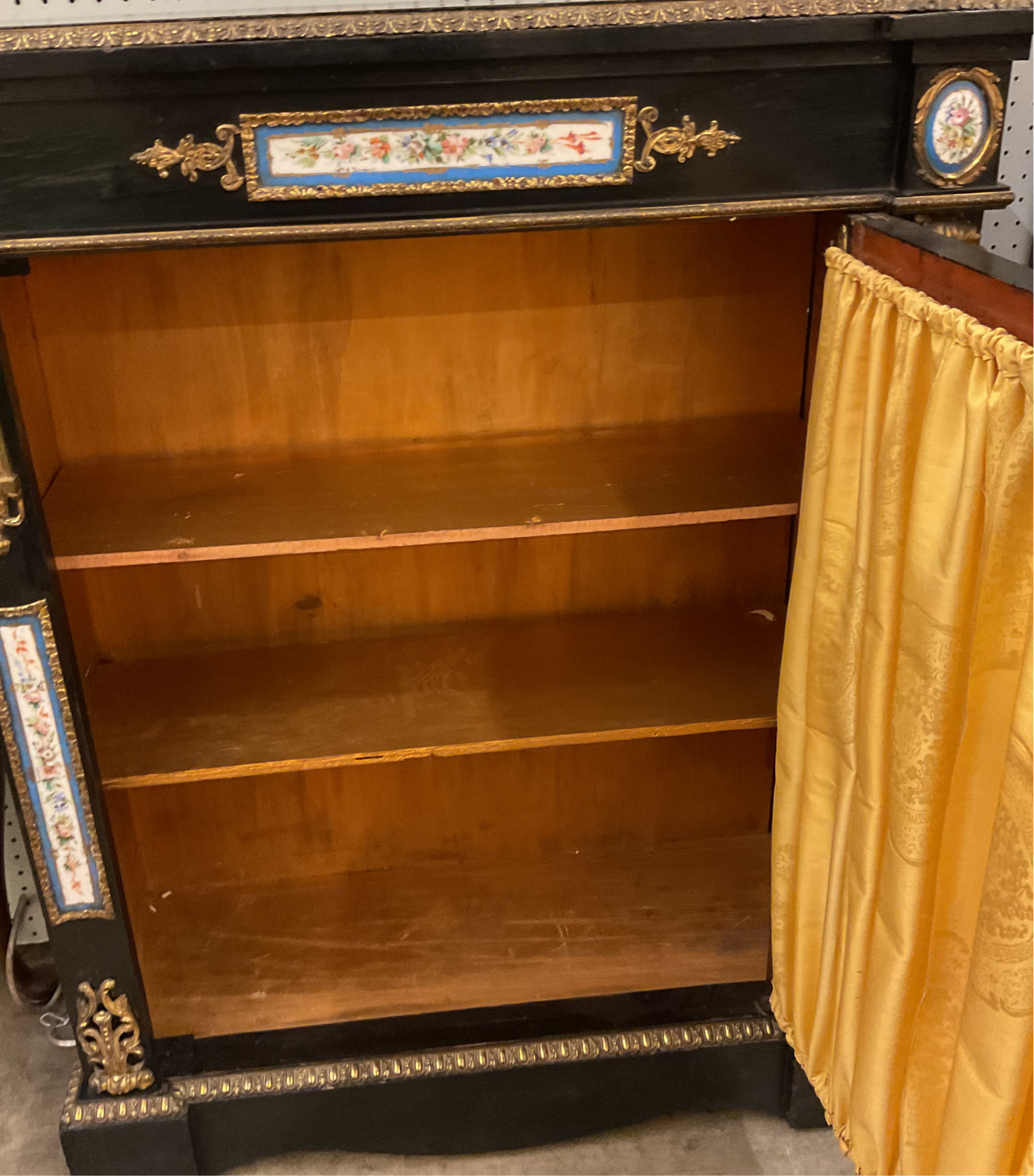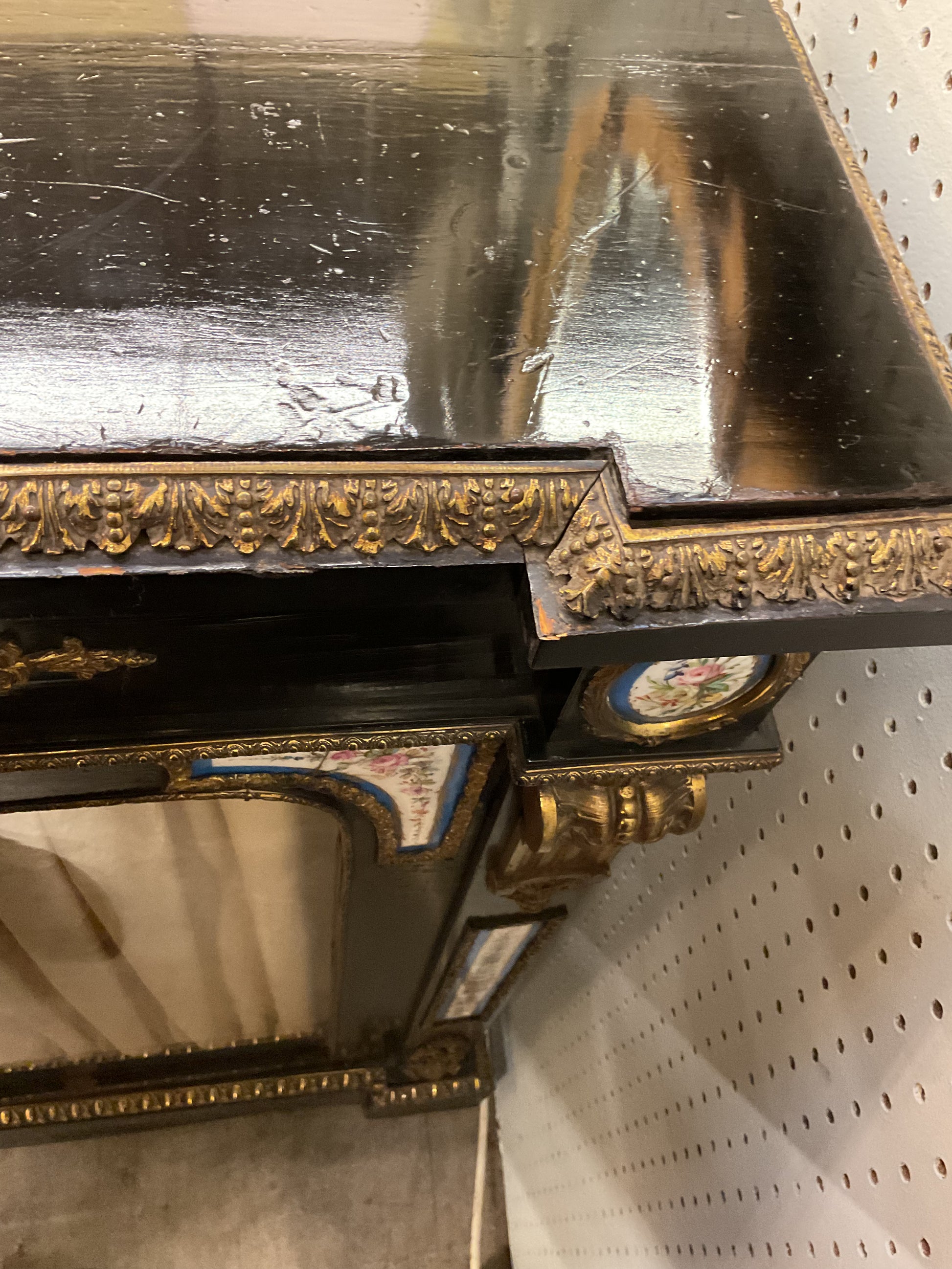 Napoleon III second empire period vitrine cabinets with ebonized wood ,hand painted porcelain plaques and ormulu workmanship.