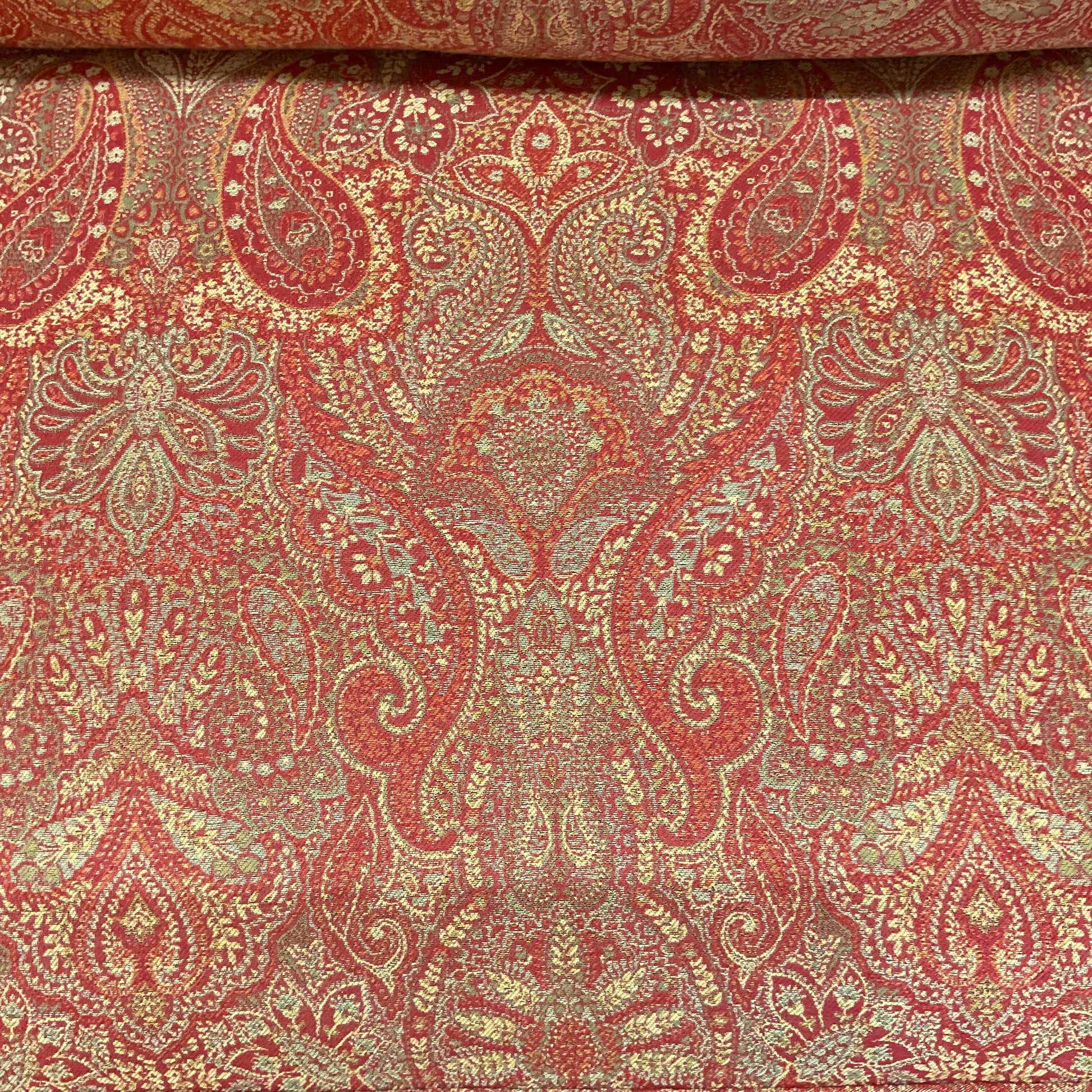 Red Paisley Loveseat By Brushwig & Fils.
