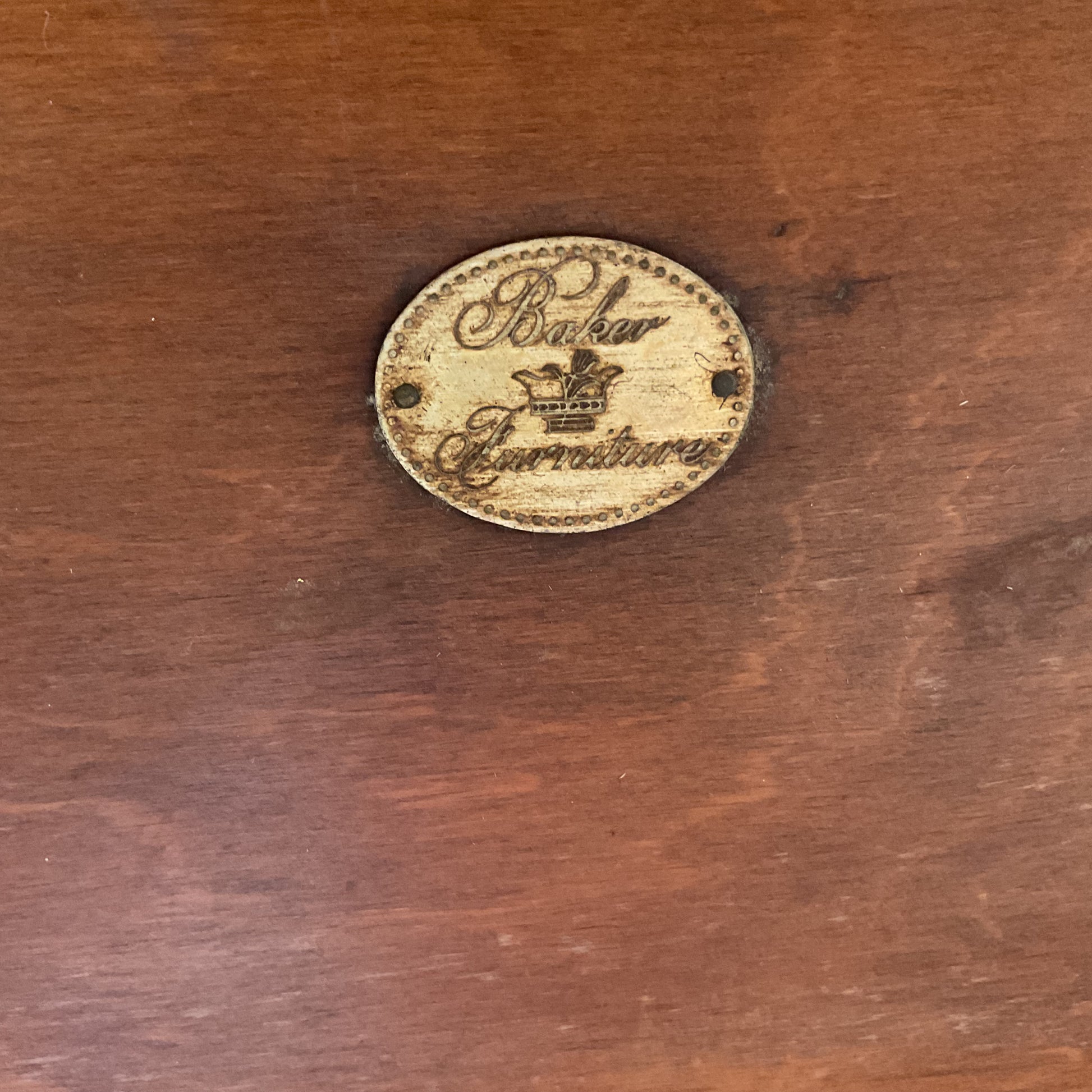 Double pedestal vintage regency style dining table on casters by Baker Furniture.