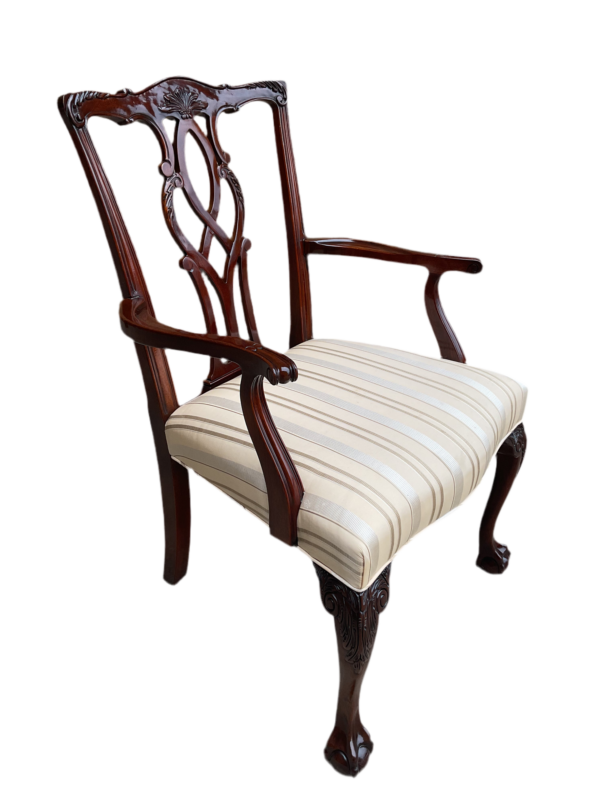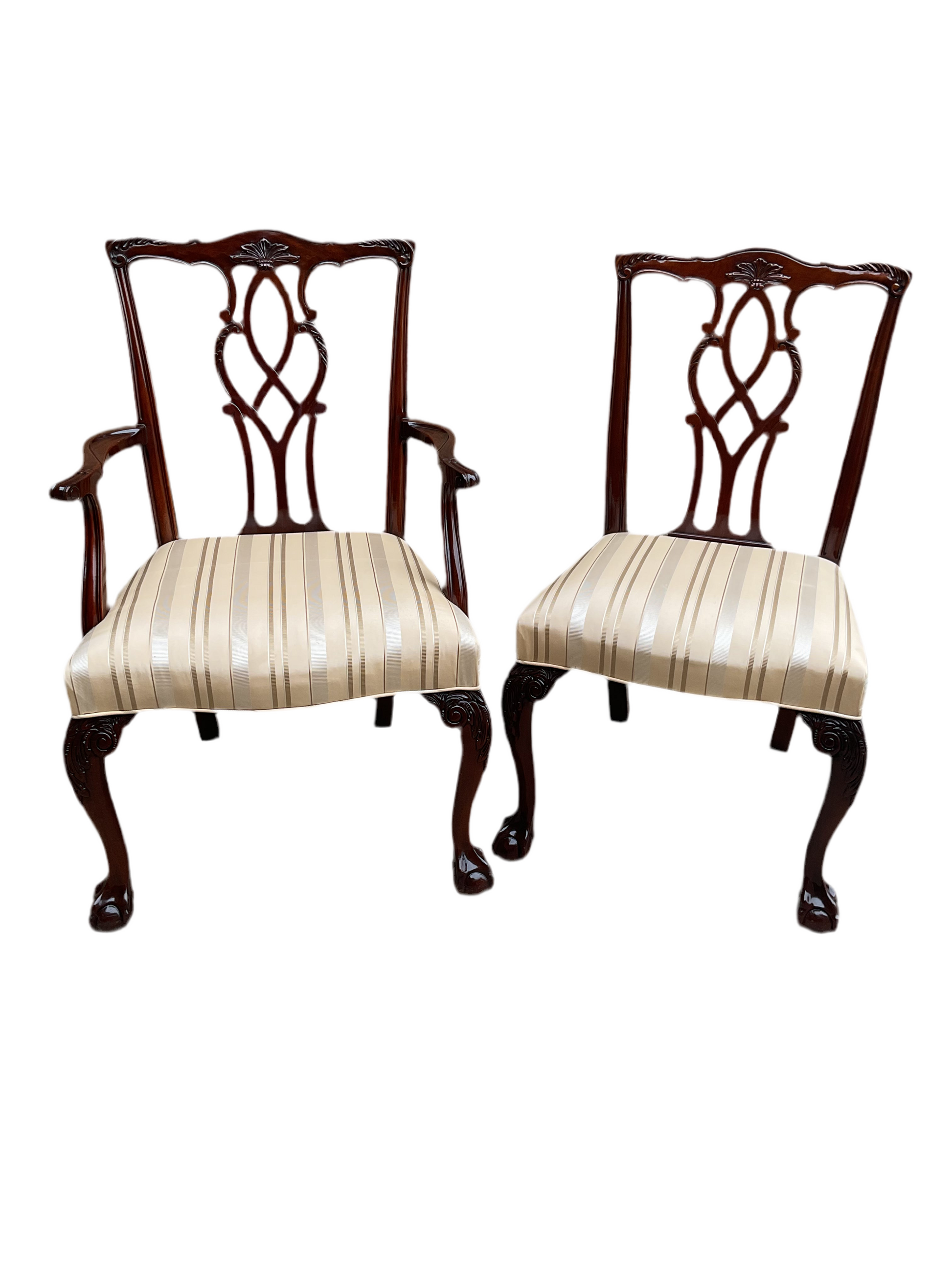 Beautiful 8 dining Chippendale style chairs with ball and claw. 6 sides and 2 arm chairs